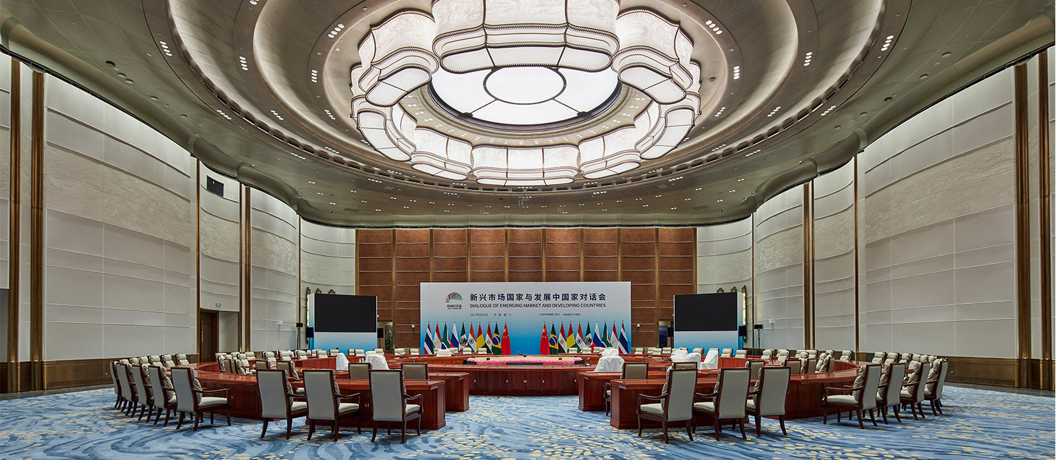 本項目改造設(shè)計范圍作為國家級重要會議的主會場、主宴會廳及附屬空間,順利承辦2017年金磚國家領(lǐng)導(dǎo)人第九次會晤及相關(guān)其他會議。