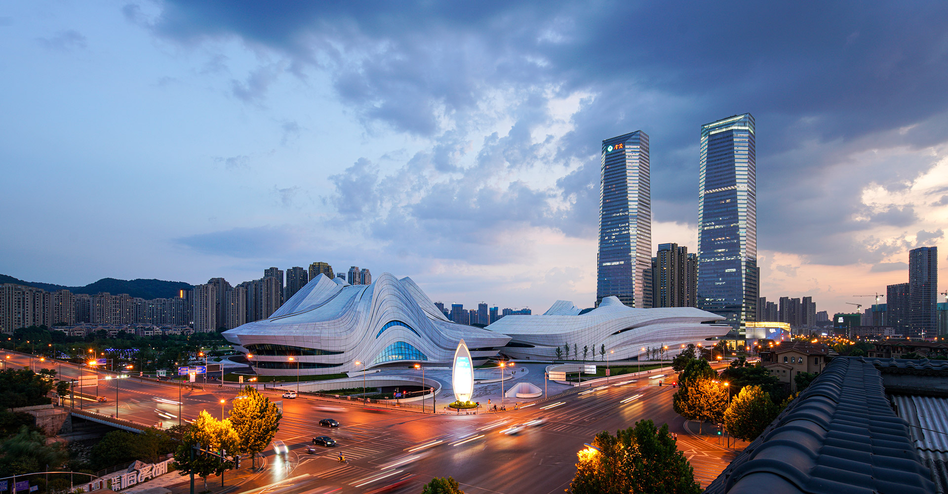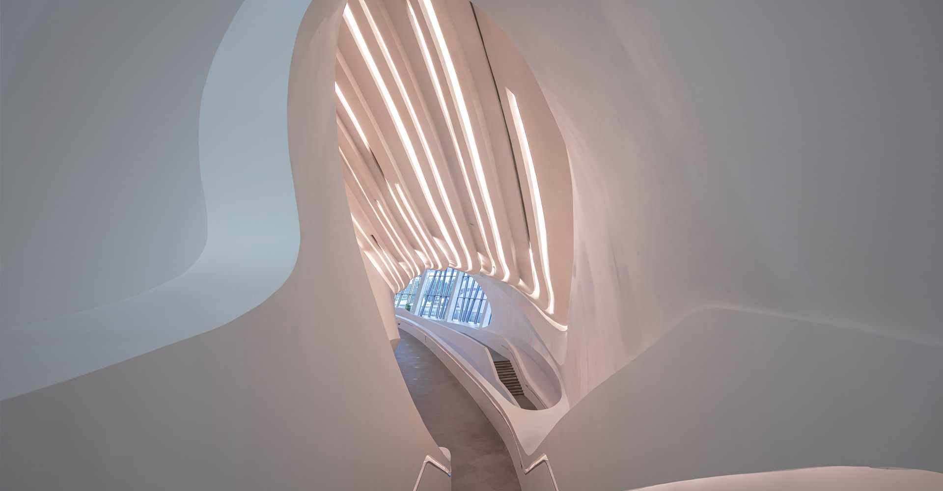 本項(xiàng)目三個(gè)建筑造型緣起于“梅花”,每個(gè)單體由“梅花”的花瓣衍生而來(lái)。大劇場(chǎng)為四片花瓣,藝術(shù)館為三片花瓣,小劇場(chǎng)為一片花瓣,高高低低地散落在梅溪湖畔。三個(gè)抽象的造型均為行云流水般的流線型設(shè)計(jì),主體均為(鋼)框架-鋼筋混凝土剪力墻結(jié)構(gòu)體系,屋蓋均為單層鋼網(wǎng)格結(jié)構(gòu)體系。