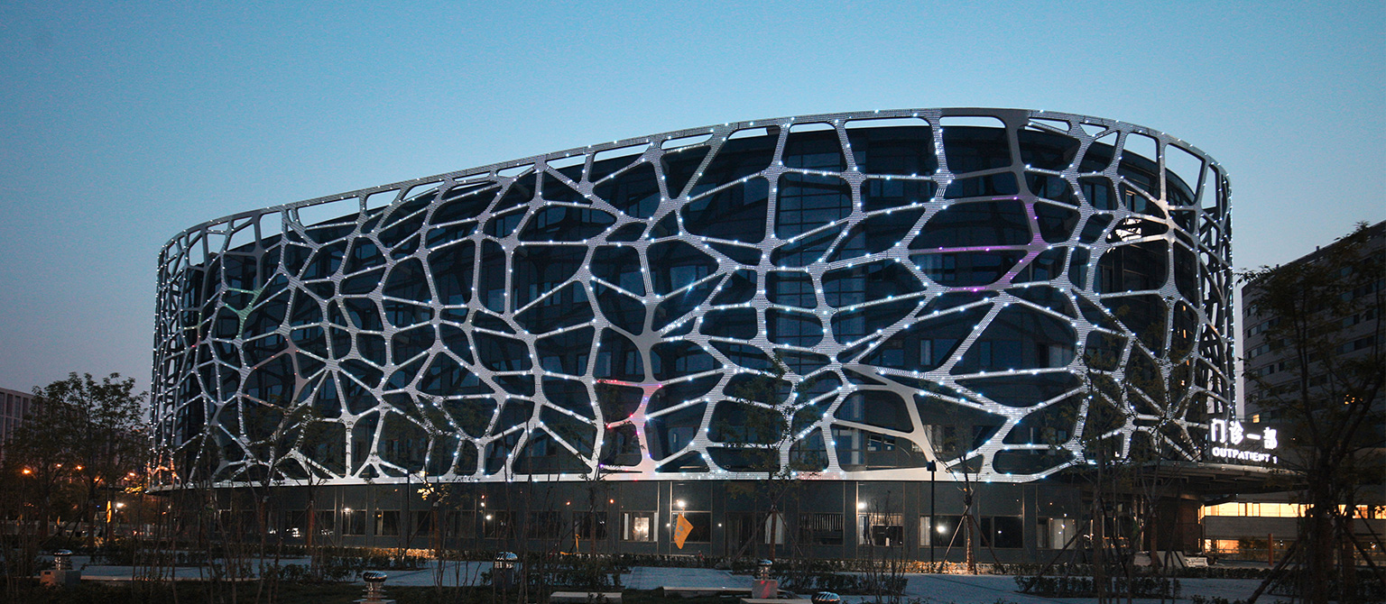 1)外遮陽技術(shù):??崎T診樓外側(cè)象征神經(jīng)元的遮陽表皮進(jìn)行遮陽。